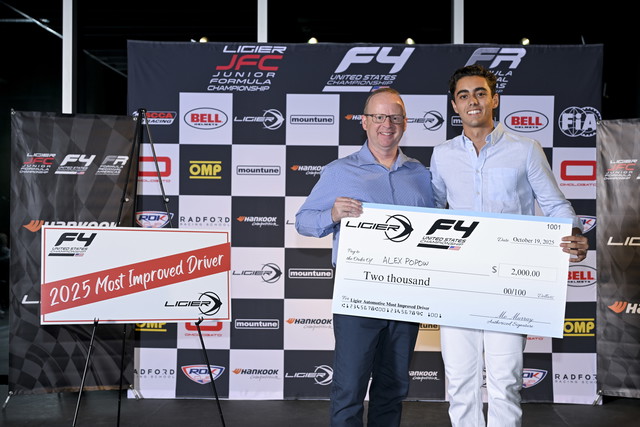 Alex Popow was recognized as the Ligier Most Improved Driver in F4 U.S., which awarded him a $2,000 parts credit from Ligier Automotive North America.